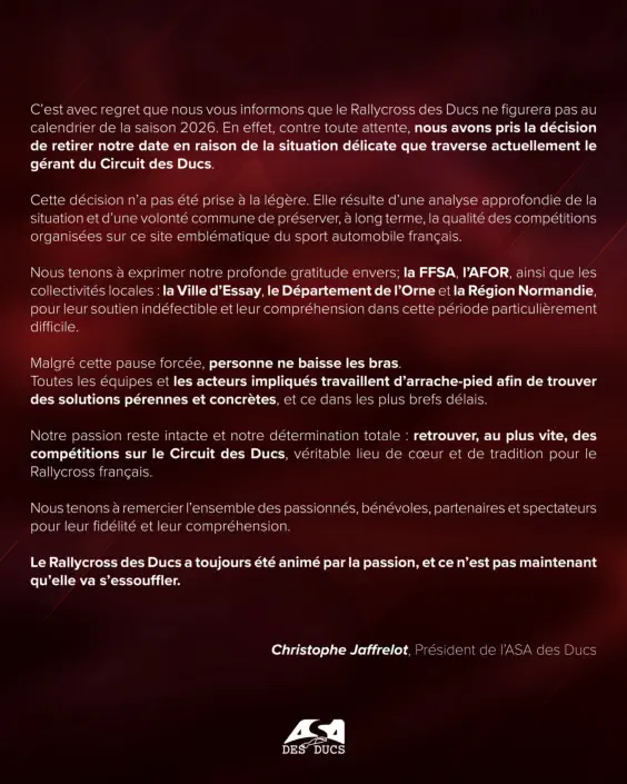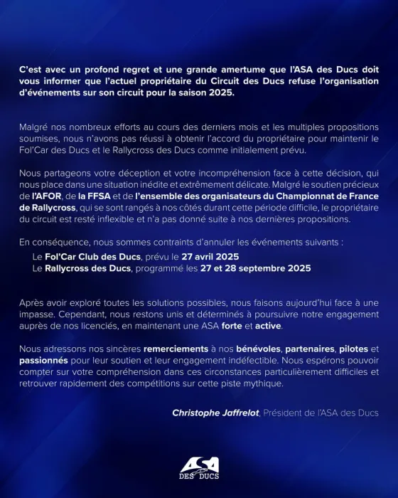 COMMUNIQUÉS ASA DES DUCS